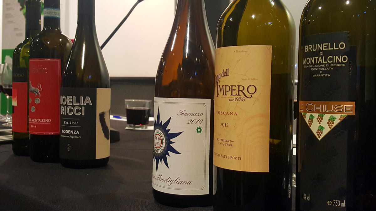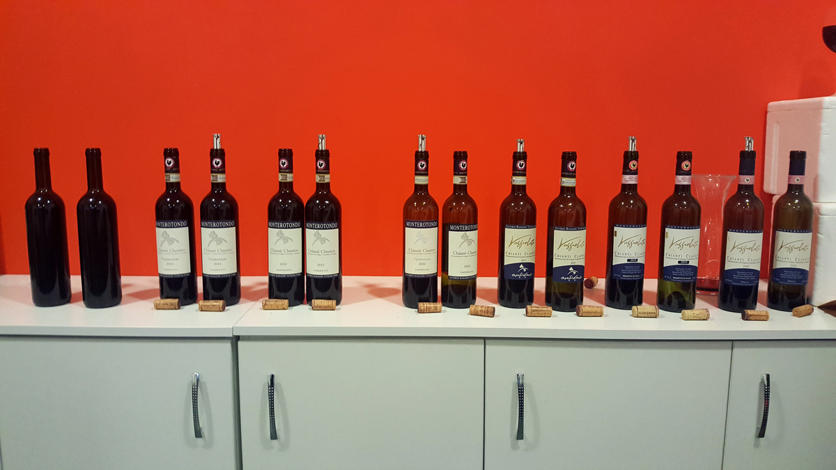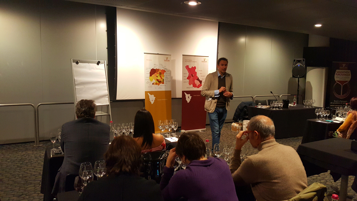 L’obiettivo era quello di dimostrare come la composizione del terreno sia determinante per l’espressione finale del Sangiovese. E in effetti i vini provenienti da terreni sabbiosi (Il Mulinaccio Terre di Pisa Sangiovese Cosimino 2016 – Volterra, I Sabbioni Romagna Sangiovese Oriolo 2016 – Forlì, Fattoria di Fibbiano Ceppatella 2013 – Pisa) hanno mediamente mostrato meno struttura e tannino con note di frutta poco matura e maggiori richiami alle spezie. L’unico ad essersi in qualche modo discostato da questi descrittori è stato il Ceppatella 2013 che ha mostrato maggiore tannino e struttura nascendo da una vigna con piante ultracentenarie. Veramente un ottimo assaggio.