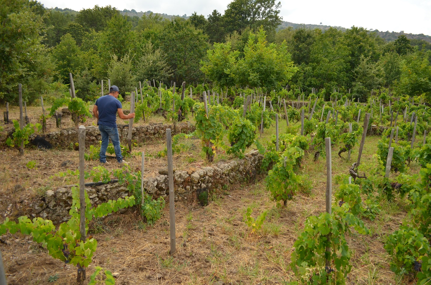 Tra i “vicini di casa” qui a quota mille troviamo Frank Cornelissen che a poche centinaia di metri possiede una lingua di terra da cui ricava le uve per il suo mitico Magma. I due vigneti hanno in comune la particolarità di ospitare alberelli a piede franco che possono superare i 100 anni di età. “Qui sull’Etna non è raro vedere piante senza portainnesto americano – conferma Alberto – La fillossera non riesce a scavare nella sabbia vulcanica tipica di queste terre. E’ così che riusciamo a produrre vino con piante prefillosseriche che donano pochissimi frutti molto concentrati. Qui abbiamo una densità di 8 mila ceppi per ettaro impiantati su terreni bruni ricchi di scheletro e a ph neutro. Non calcarei ma molto ricchi di ferro e ad alto contenuto di azoto. C’è da dire che nonostante tutti i terreni dell’Etna siano di origine vulcanica, nella realtà cambiano molto da parcella a parcella. Se pensiamo che dal 1450 a.c. ad oggi ci sono state ben 158 colate, è facile immaginare che anche nella stessa vigna si possono avere suoli differenti”.