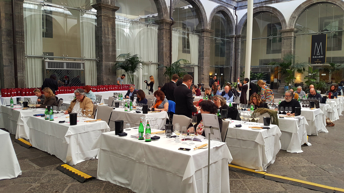Il giorno dopo è stata la volta della degustazione coperta di 109 vini bianchi campani. Sorprendenti le performance delle etichette a base Falanghina come il Falerno del Massico 2014 di Villa Matilde che offre piacevoli note floreali unite a frutta gialla e secca con una bocca caratterizzata da grande sapidità e persistenza. Sugli scudi la denominazione Campi Flegrei con l’Agnanum Falanghina 2016 che alle note salmastre abbina ottimo equilibrio e persistenza e La Sibilla Falanghina Cruna del Lago 2015 che a tre anni dalla vendemmia offre delicati ricordi di idrocarburi ed erbe aromatiche e un sorso decisamente fresco.