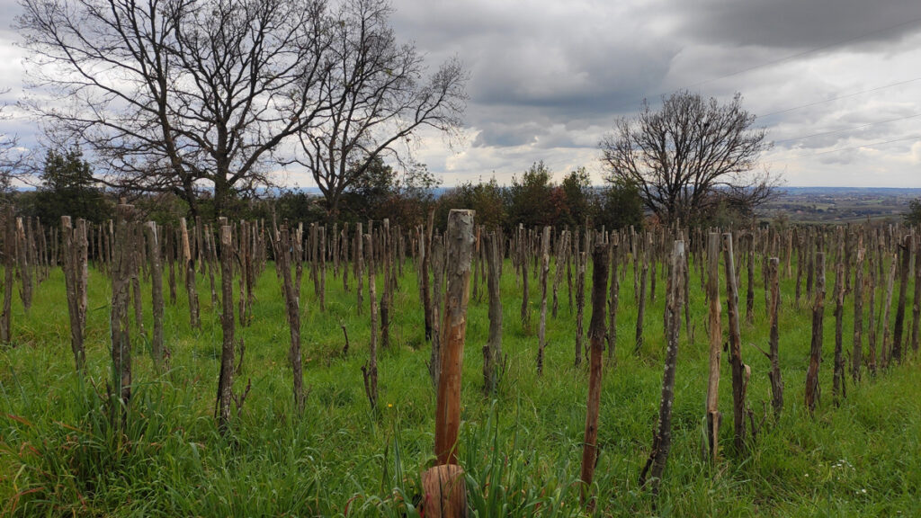 Siamo a 250 mt di altezza su suoli sabbiosi con forte presenza di scheletro derivante dallo sgretolamento delle lave. È qui, nel versante sud del Vulcano Laziale, che su 4 ettari di vigna circondati da querce, castagni, noci, ulivi e macchia mediterranea si coltivano Cesanese, Malvasia Puntinata, Trebbiano Verde e Bombino. “Abbiamo iniziato con 2 ettari in affitto – raccontano – poi tra il 2020 e il 2021 abbiamo impiantato circa 2 ettari a Cesanese e Trebbiano Verde. Erano terreni abbandonati su sui c’era un vecchio uliveto distrutto da un incendio”.