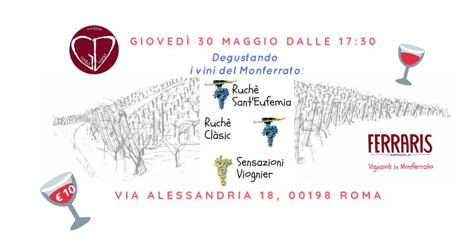 Giovedì 30 Maggio dalle ore 17.30 terremo una degustazione dei vini della cantina Ferraris del Monferrato.